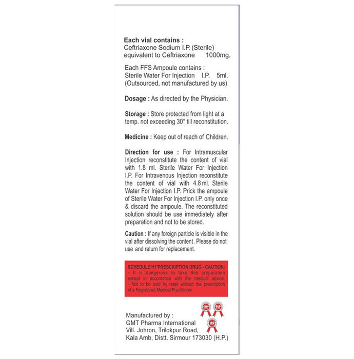 Composition : Ceftriaxone (1000mg)
