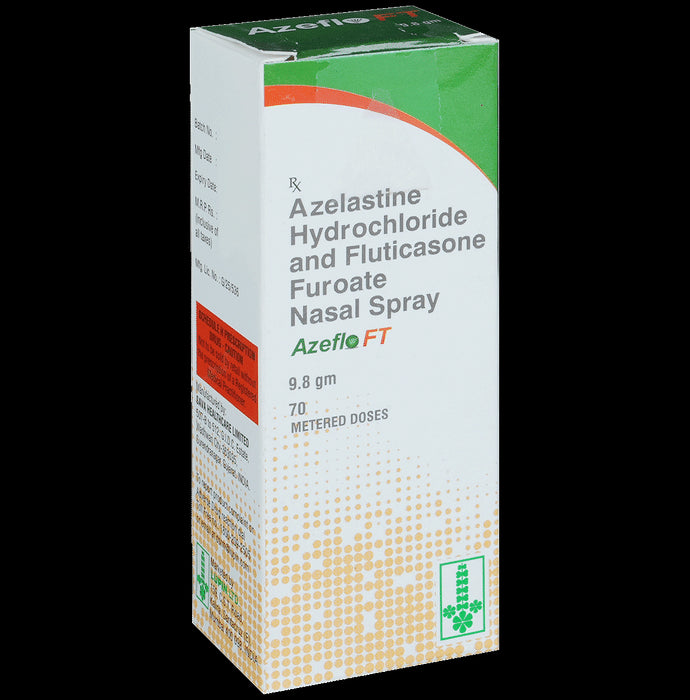 Azeflo FT Nasal Spray is a combination medicine used in the treatment of allergy symptoms such as runny nose, stuffy nose, sneezing, watery eyes, and congestion or stuffiness. Azeflo FT Nasal Spray should be used as you have been advised by your doctor. Do not use it more often or for longer than recommended. Normally you should blow your nose gently before using it, keep one nostril closed while applying the medicine into the other, and then sniff hard to make sure it reaches deep into the nose. Then repeat for the other nostril. It provides relief very quickly and can last for several hours. If you use this medicine too often or for too long, it may worsen your symptoms rather than improve them.The most common side effects are taste change, nosebleeds, diarrhea, fever, and headaches. Most of these are temporary and usually resolve with time. Contact your doctor straight away if you are at all concerned about any of these side effects.Never support self-medication or recommend your medicine to another person. It is beneficial to have plenty of fluids while taking this medication. Before you start taking this medicine it is important to inform your doctor if you are suffering from liver or kidney disease. You should also tell your doctor if you are pregnant, planning pregnancy, or breastfeeding.