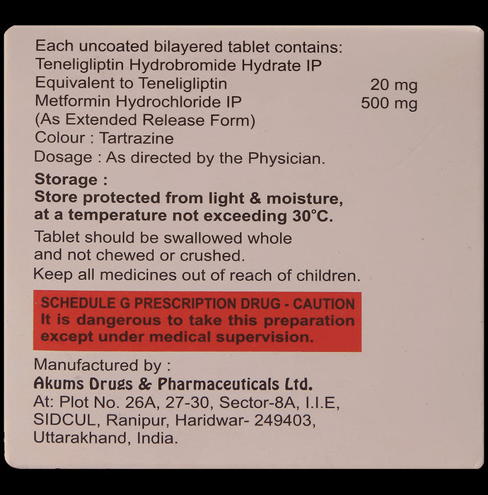 Composition : Metformin (500mg) + Teneligliptin (20mg)