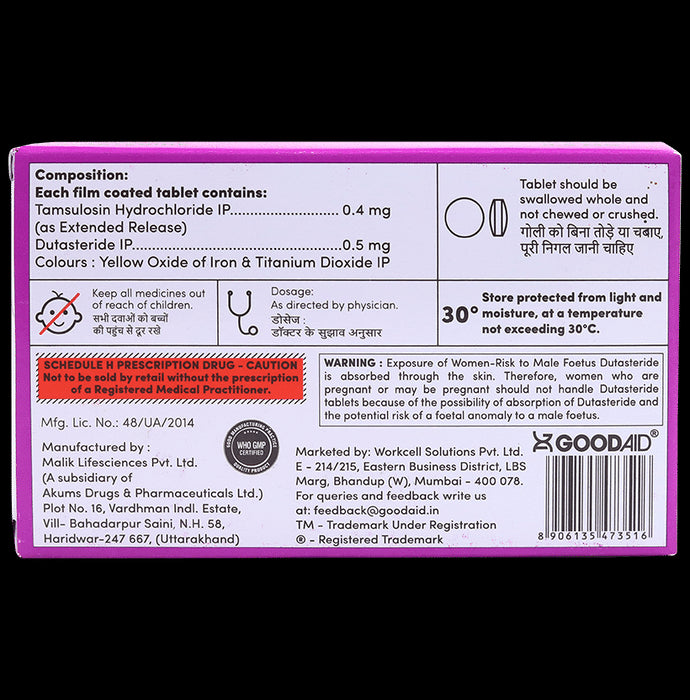 Composition : Tamsulosin (0.4mg) + Dutasteride (0.5mg)