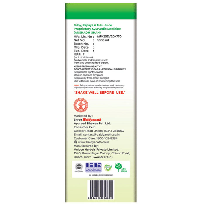 Baidyanath (Jhansi) Giloy, Papaya & Tulsi Juice