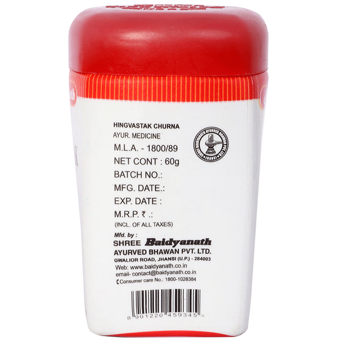 Baidyanath (Jhansi) Hingvashtak Churna is mainly used for problems related to indigestion (gas, constipation, loose motions, hiccups). It ignites the digestive fire and burns away toxins and metabolic waste. It helps increase the absorption of nutrients.