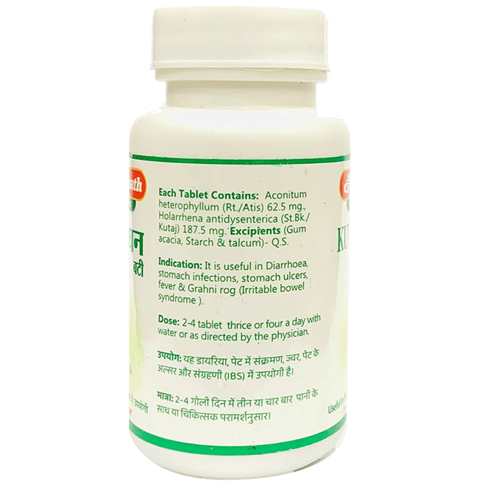 Baidyanath (Jhansi) Kutjaghan Bati is an ayurvedic medicine, which has been used since ancient times, assisting in the enhancement of digestive health. It can help improve bowel conditions and contains anti-dysentery properties. The tablet can help manage diarrhoea and irritable bowel syndrome.