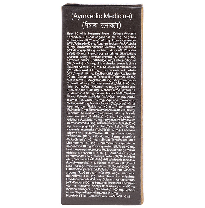 Composition : Ashwagandha,Shatavari,Karanj,Ashtwarg,Keshar,Chandan,Padamkastha,Chaturjat,Agaru,Khus,Til Oil