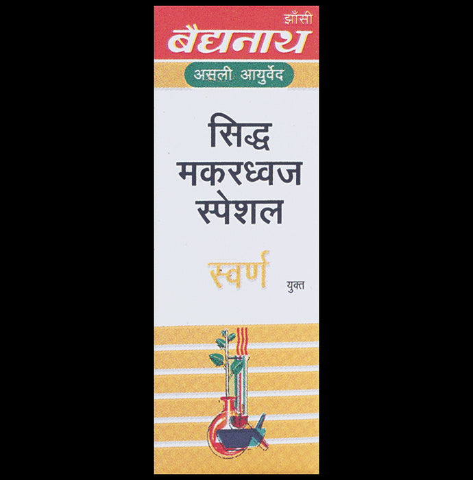 Baidyanath (Jhansi) Siddha Makardhwaj Special with Gold is an ayurvedic formulation that helps combat general debility and weakness in the body. It is fortified with Gold and Pearl which helps rejuvenate the body and helps in keeping you healthy and active.
