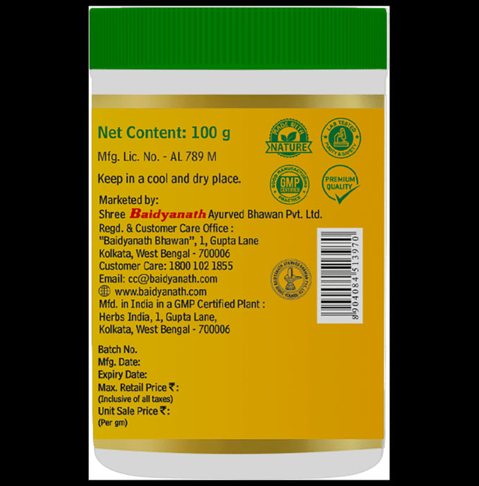 Baidyanath Mahasudarshan Churna contains 49 Ayurvedic ingredients: Swertia chirata, Triphala, Haridra, Daruharidra, Kantakari, Brhati, Karcura, Sunthi, Marica, Pippali, Murva, Guduchi, Dhanvayasa, Katuka, Parpata, Musta, Trayamanag, Hrivera, Nimba (chhal), Puskara, Yasti, Kutaja, Yavani, Indrayava, Bharang, Sigru, Saurastri, Vaca, Tvak, Padmaka, Svetacandana, Ativisa, Bala, Salaparn, Prsniparni, Vidanga, Tagara, Citraka, Devadaru, Cavya, Patola, Lavanga, Vamsa, Kamala, Ashwagantha, Tejapatra, Jatiphala Sthauneya, Vidarikand, and kiratatikta. Swertia chirata promotes digestion in the body and acts as a laxative. Triphala protects the body from the threat of allergens and infections. Nimba cools down the body and relaxes the blood flow. Baidyanath Mahasudarshan Churna has antiviral and anti-inflammatory properties that help in treating fever symptoms. This also improves appetite functions and digestive processes within the body. Direction for use:A person must consume 3 to 6 grams of Baidyanath churna two to three times a day. Ayurvedic medicine for fever can be consumed with water after meals. Use under medical supervision.
