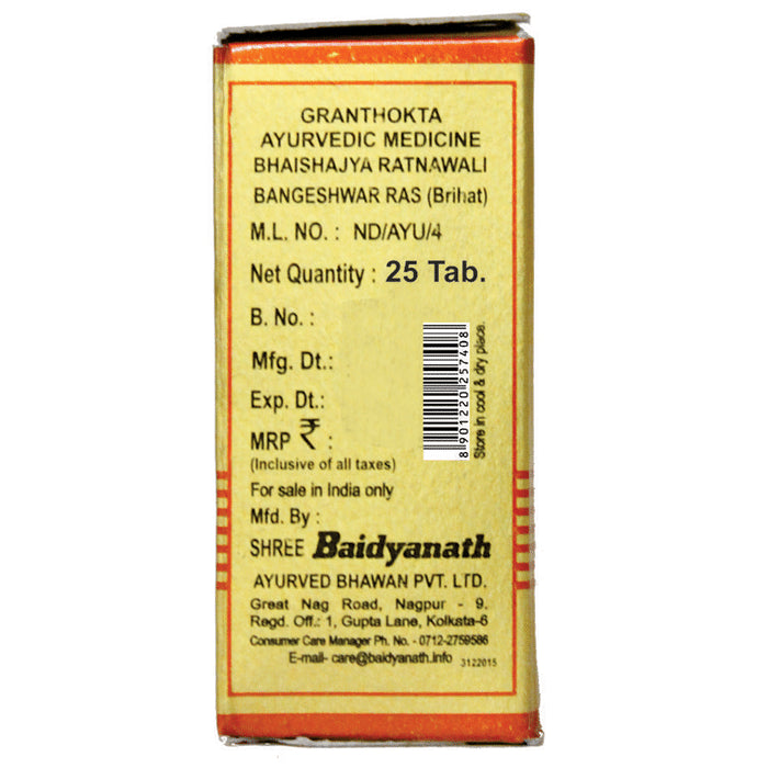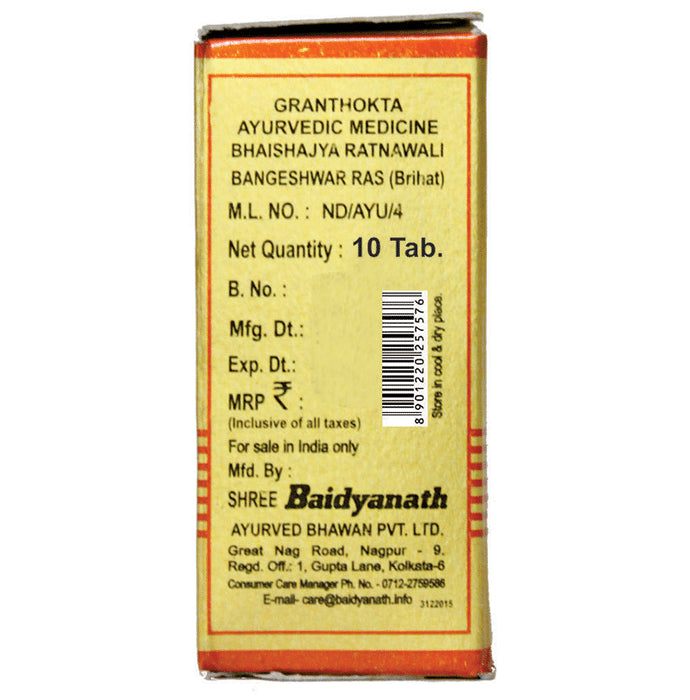 Baidyanath (Nagpur) Bangeshwar Ras is an ayurvedic medicine that is helpful in acute in chronic pramehas. It is made with all-natural ingredients and does not cause contradictions.