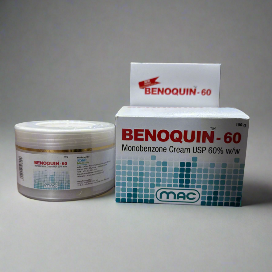 Benoquin Cream is used for depigmentation. It is used to permanently lighten the skin in people with extensive vitiligo. It works by increasing the elimination of melanin from skin cells.