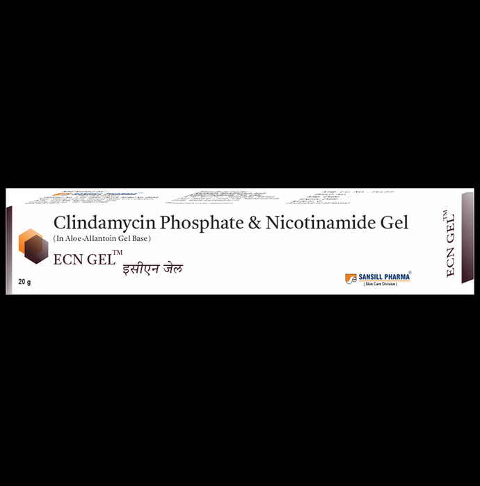 ECN Gel is a combination of two medicines: Clindamycin and Nicotinamide, which treats pimples (acne). Clindamycin is an antibiotic which works by penetrating into the skin and killing acne-causing bacteria. Nicotinamide is a form of vitamin B. It exerts anti-inflammatory effects when applied to the skin and reduces swelling, redness and tenderness associated with acne.