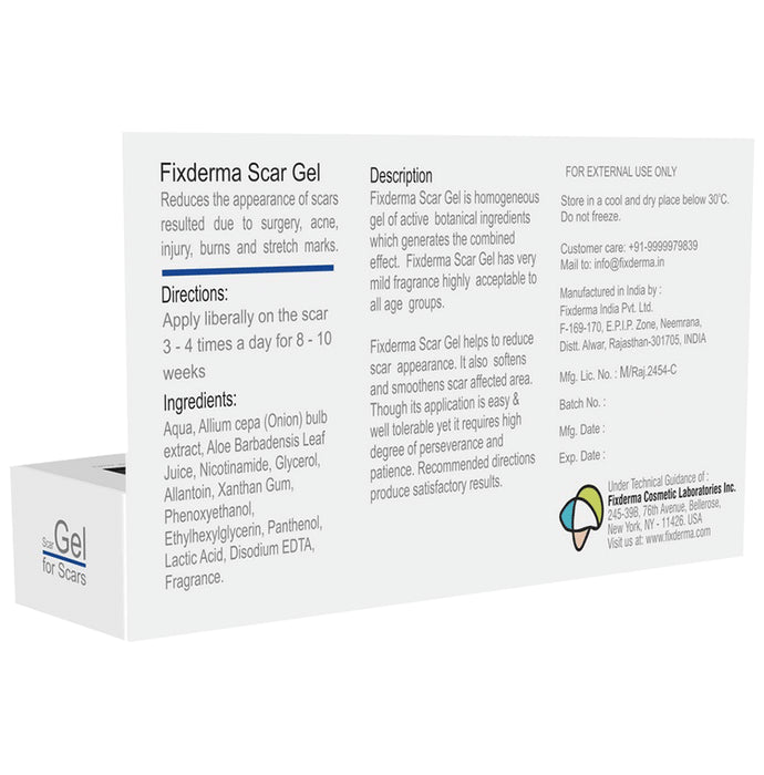 Fixderma Scar Gel contains natural ingredients that aid in the healing and reduction of acne scars and burn marks. Nicotinamide is a nutrient that helps to improve the skin's lipid barrier and protects it from UV damage. It also contains allantoin, which moisturises the skin, exfoliates it, and helps to minimise hyperpigmentation.