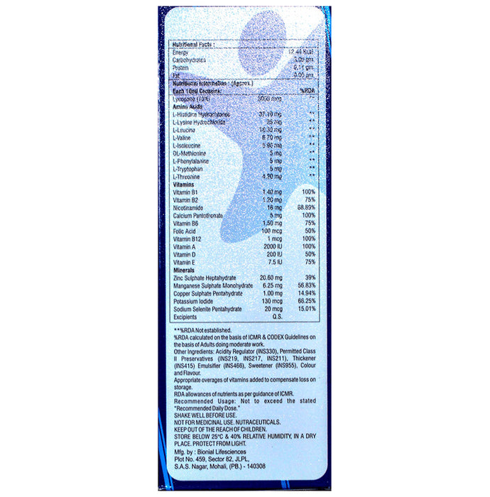 Composition : Lycopene, Amino Acids, L-Histidine Hydrochtones, L-lysine hydrochloride, L-Leucine, L-valice, L-Isoleucine, OL-Methionine, L-Phenylalanine, L-Tryptophan, L-Threonine, Vitamin B1 140 mg, Vitamin B, Nicotinamide, Calcium Pantothenate, Vitamin B6, Folic Acid, Vitamin B12, Vitamin A, Vitamin D, Vitamin E, Zinc Sulphate Heptahydrate, Manganese Sulphate