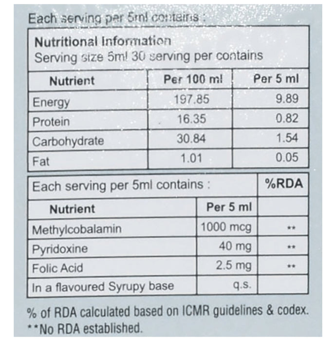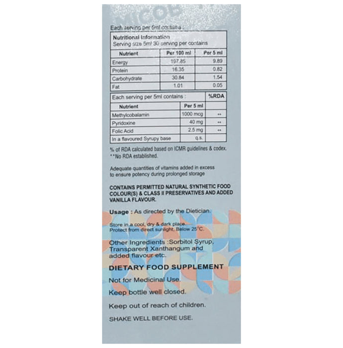 Micob Syrup is a dietary supplement that contains the key ingredient methylcobalamin, a form of vitamin B12. It deals with nutritional deficiencies and improves different conditions. It takes care of your overall health.