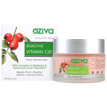 Oziva Bioactive Vitamin C30 Face MoisturiserThis vitamin C-rich moisturiser helps enhance the skin's natural glow, protects the skin, refreshes the skin, adds glow to the skin, supports the elimination of free radicals and boosts collagen production for youthful skin.