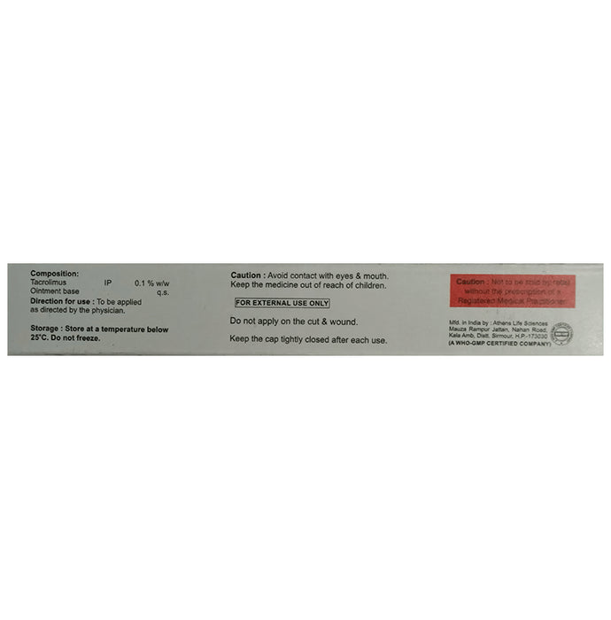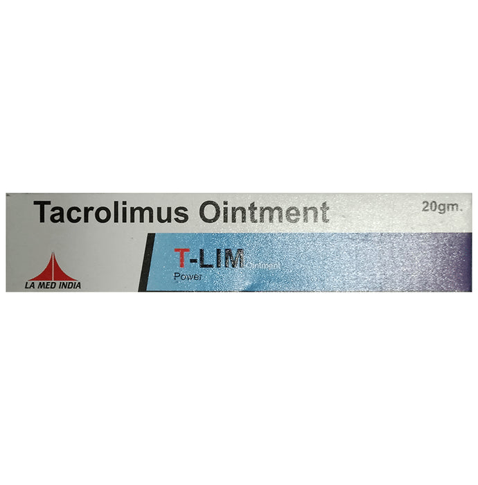 Tlim Power 0.1% Ointment is used to treat eczema (atopic dermatitis). It works by suppressing the activity of certain immune cells that cause inflammation (redness and swelling) of the skin. This relieves itching and improves rashes in atopic dermatitis. Tlim Power 0.1% Ointment is used for external use. It should be used 2-4 times a day on the affected area or use it as suggested by the doctor. It should be applied slowly and evenly to the skin until it is rubbed in. You should not use it too often and you should not cover the treated area with a bandage or plaster. You must inform your doctor if there’s no improvement even after two weeks of treatment or if the skin gets worse.Use of this medicine may cause some common side effects like erythema, headache, inflammation of hair follicle, and application site reaction like burning, irritation, itching, and redness. This medicine is not normally recommended during pregnancy or while breastfeeding unless it is clearly needed.